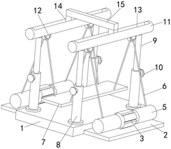 4.根据权利要求1所述的一种脑瘫偏瘫行走康复训练平衡矫正器,其特征在于,所述伸缩机构包括固定连接于底板(1)上端的两根支撑柱(8),两根所述支撑柱(8)的上端均插设有支撑杆(9),两根所述支撑柱(8)的侧壁上螺纹连接有固定螺栓(10),两根所述固定螺栓(10)的一端分别穿过两根支撑柱(8)的侧壁并与两根支撑杆(9)相接触,两根所述支撑杆(9)分别与放置机构相连接。