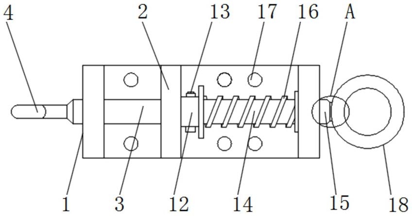 6.根据权利要求1所述的一种航空地勤车用牵引装置,其特征在于,所述挂钩(4)的一端活动连接有第二锁紧杆(9),所述第二锁紧杆(9)的后端固定连接有第二连接轴(10),所述第二锁紧杆(9)通过第二连接轴(10)与挂钩(4)活动连接,所述第二锁紧杆(9)与挂钩(4)之间固定连接有第一弹簧(11)。
