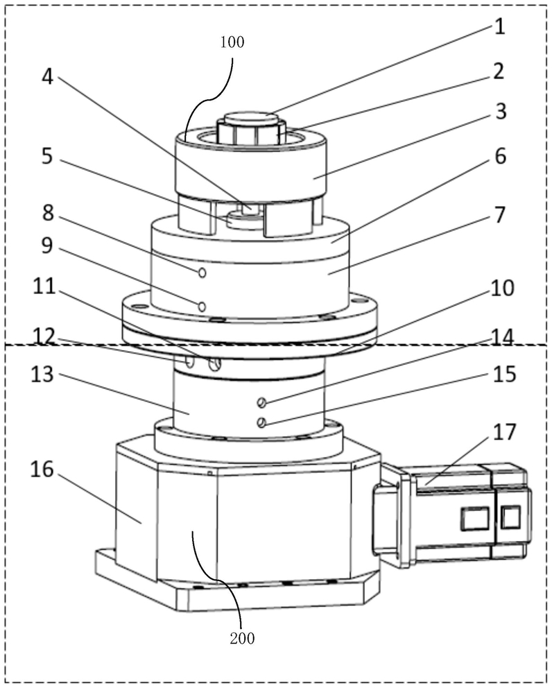 9.根据权利要求8所述轮毂抛磨工作台,其特征在于:所述旋转机构还包括变速箱,所述第二驱动件经所述变速箱与所述气滑环的转子连接。