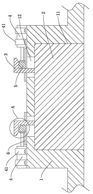 1.一种新能源汽车电池安装结构,包括车体(1)和安装在车体(1)底部的电池组(2),所述车体(1)的底部设置有可供电池组(2)嵌入的凹槽(11),其特征在于:所述电池组(2)的上端面上固定有两个呈左右对称设置的“L”字形的悬挂架(3),所述凹槽(11)的顶部设置有分别可供其中一个悬挂架(3)竖向穿过的通孔(12),所述车体(1)的内部固定有分别用于支撑其中一个悬挂架(3)的支撑结构;每个支撑结构均包括固定在车体(1)中的电动伸缩杆(4),所述电动伸缩杆(4)的伸缩端上固定有用于支撑悬挂架(3)中的水平段(31)的支撑块(5),所述支撑块(5)可左右滑动地连接在车体(1)中。