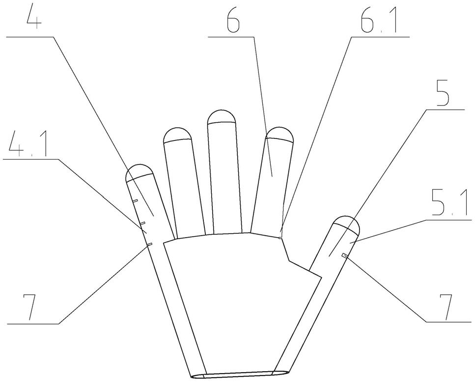 4.根据权利要求3所述的一种非牛顿流体手套,其特征在于:所述第一保护块(5.1)从大拇指的指尖延伸到手腕处。