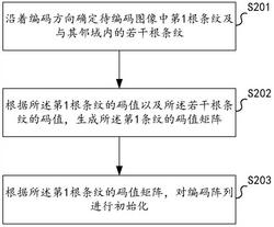 2.根据权利要求1所述的方法,其特征在于,生成所述第i条纹的码值矩阵之后,包括:判断所述第i根条纹的码值矩阵与所有前i-1根条纹的至少一码值矩阵是否相同;若不同,则根据所述第i根条纹的码值矩阵以及所有前i-1根条纹的码值,生成用于对待编码图像进行编码的编码阵列。
