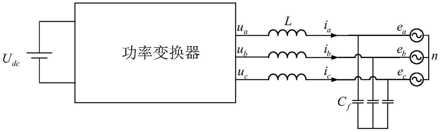 1.功率变换器LC交流滤波器电感参数的在线估计方法,其特征在于,所述功率变换器为包括带有LC滤波器的直流-交流并网逆变电路或交流-直流整流电路,所述功率变换器的直流侧连接具有直流电压源性质的直流电,所述功率变换器的交流侧连接交流电网,所述功率变换器的主电路是三相变换电路,电感参数的在线估计方法为:采样三相电网电压ea、eb、ec、三相滤波电感电流ia、ib、ic以及通过直流侧电压以及三相占空比进行重构得到三相变换器端口电压ua、ub、uc,然后将三相电网电压ea、eb、ec、三相滤波电感电流ia、ib、ic以及重构的三相变换器端口电压ua、ub、uc经过坐标变换变为同步旋转坐标下对应的d、q轴分量,设定d、q轴上的实际两相电感电流为参考模型,以d、q轴上的两相电网电压和两相重构端口电压建立电感电流的可调模型,以可调模型的d、q两相电感电流去逼近参考模型的实际d、q两相电感电流,参考模型的实际d、q两相电感电流与对应的可调模型的d、q两相电感电流分别做差,选取合适的自适应率来实时调节可调模型中的电感参数,保证可调模型的两相电感电流,即可调电流模型,与参考模型的实际两相电感电流,即参考电流模型一致,从而得到在线估计的电感参数。