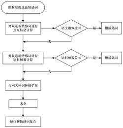 对已经提取的候选词进行细粒度筛选:结合点互信息值和语料频数差来筛选,二者值均为0时则删除,否则保留该新情感词;