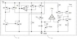 1.一种用于降压型开关电源的自适应关断时间产生电路,其特征在于,包括:正比输入电压的电流产生电路(1)及自适应关断时间产生核心电路(2),其中,所述正比输入电压的电流产生电路(1)的信号输出端与所述自适应关断时间产生核心电路(2)的信号输入端相连,所述正比输入电压的电流产生电路(1)为所述自适应关断时间产生核心电路(2)提供偏置信号。