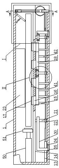 4.根据权利要求1所述的一种用于便携式计算机的安全外壳,其特征在于:所述的盒体(1)内壁的左侧位于隔板(14)的上方固定连接第二弹簧杆(50)的左端,第二弹簧杆(50)的右端固定连接推板(51)的左侧,推板(51)的右侧固定安装橡胶垫(52)。