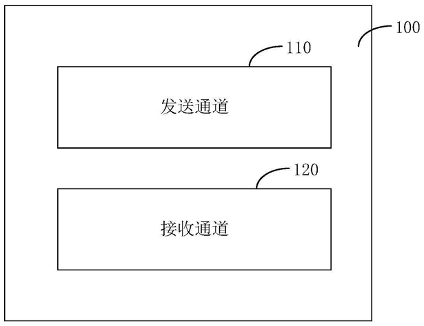 所述发送通道,具有m个第一数据接口和m个第二数据接口,包括一组可软件编程的第一处理器,用于对通过所述m个第一数据接口获取的m路数据时分复用为1路数据,采用所述一组可软件编程的第一处理器对1路数据分段进行中频运算处理,并将运算处理完毕的1路数据进行时分解复用为m个第二数据接口的数据,实现数据的发送处理;