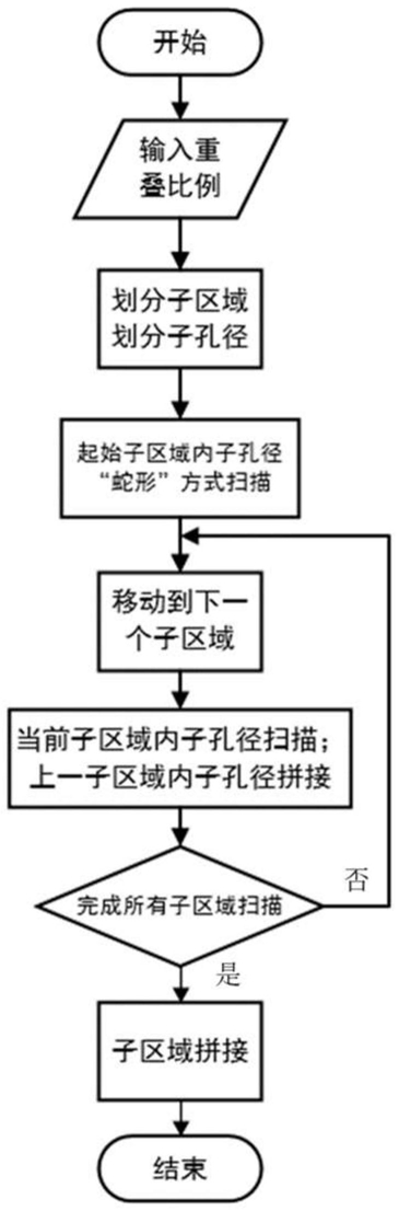 (4)采用子区域蛇形扫描方法顺次扫描所有的子区域,每个子区域内采用步骤(3)相同的子孔径蛇形扫描和子孔径拼接方法进行扫描和拼接;