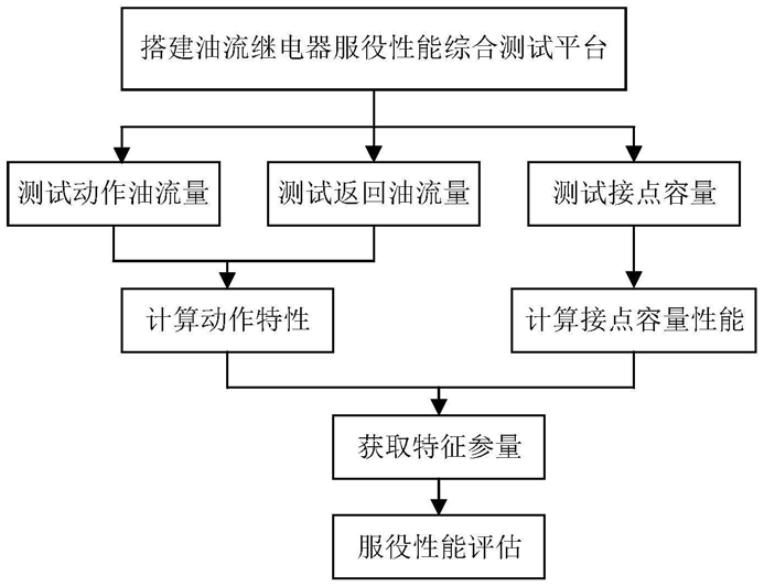 1.一种变压器油流继电器服役性能的测评方法,其特征在于,包括以下步骤:第一步:搭建变压器油流继电器服役性能评估综合试验平台搭建变压器油流继电器服役性能评估综合试验平台,试验平台主要由油流继电器(1)、指示装置(2)、电动机(3)、输油管(4)、标准流量计(5)、油箱(6)、变压器油(7)、阀门(8)、