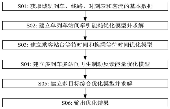 2.根据权利要求1所述的城市轨道交通列车运营时刻表和速度运行曲线优化方法,其特征在于:在步骤S01中,所述城轨列车的基本数据包括车重、牵引制动特性、车长、最大限速、戴维斯系数和载客容量;所述城轨线路的基本数据包括站间公里标、坡道、弯道、限速和供电区间设置;所述城轨列车运营时刻表的基本数据包括站间运行时间、发车间隔、停站时间和服务时间;所述的客流基本数据包括乘客始发站、终点站、进站时间和出站时间。