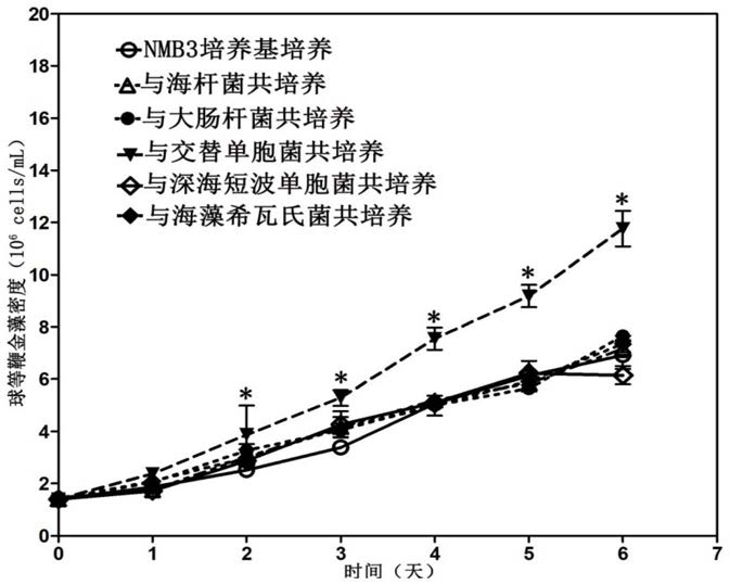 3.权利要求1所述的交替单胞菌属菌株在培养球等鞭金藻中的应用。