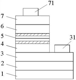 S7:在n型Alx1Ga1-x1N层(3)台面上蒸镀n型欧姆电极(31),蒸镀后对n型欧姆电极(31)进行退火处理;