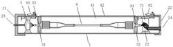 3.根据权利要求1所述的一种产生中红外超连续谱的硫系光纤耦合器,其特征在于所述的套筒由第一筒体和第二筒体构成,所述的第二筒体部分套设在所述的第一筒体上,所述的第一筒体上开设有长条孔,所述的长条孔沿所述的第一筒体的长度方向设置,所述的第二筒体上安装有调节螺栓,所述的调节螺栓穿设于所述的长条孔,所述的缺口包括第一缺口和第二缺口,所述的第一缺口开设在所述的第一筒体上,所述的第二缺口开设在所述的第二筒体上。