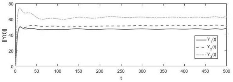 Mi=GiYi(l)[I+BiBiYi(l)]若满足||Fi(l+1)‑Fi(l)||<ε,其中,ε为给定的精度系数,则Fi(l)即为满足要求的控制器增益,系统抗干扰反馈控制率为u(k)=Fi(l)x(k);若不满足,则l=l+1,将Fi(l)返回步骤b。
