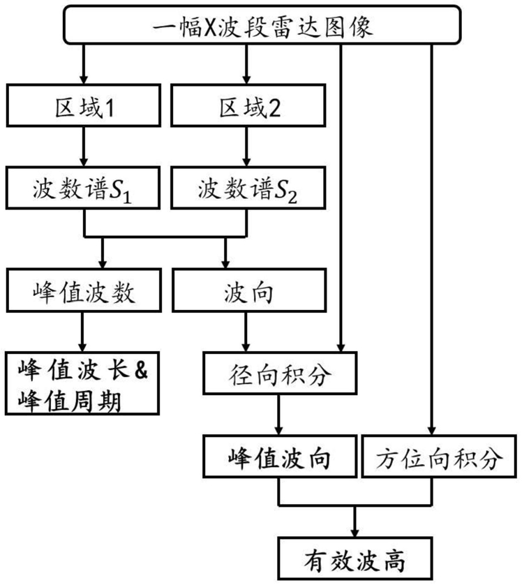 2.根据权利要求1所述的一种利用单幅船载X波段雷达图像反演海浪参数的方法,其特征在于:所述区域1的方位角为θ1~θ1+30°,区域2的方位角为θ2~θ2+30°,且θ1和θ2满足: