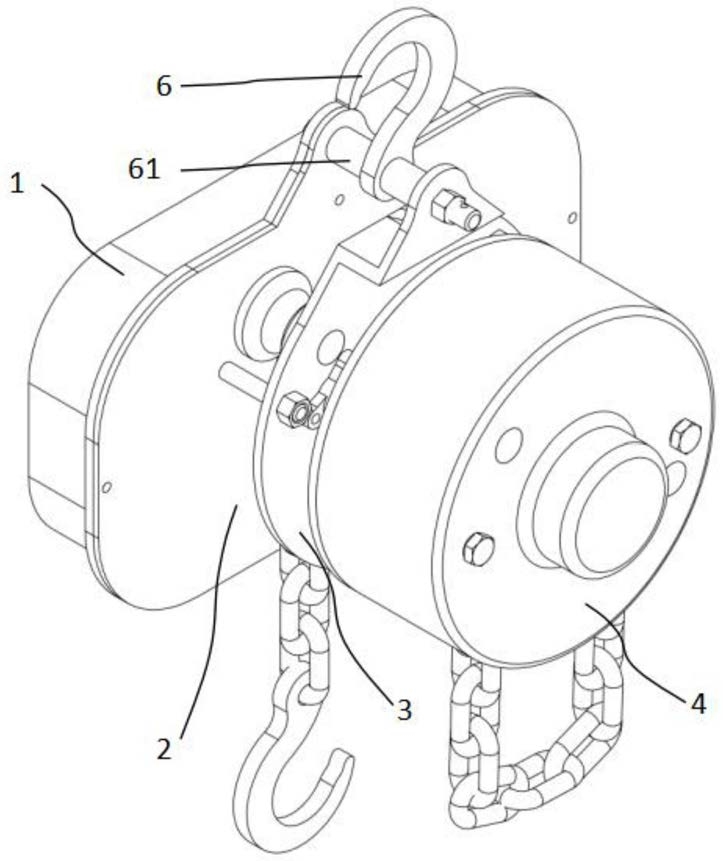 7.根据权利要求6所述的具有快速升降离合装置的手动环链葫芦,其特征在于:所述传动轴的末端通过轴承与机壳连接,所述机壳固定于所述分离盘上,所述机壳上设置有开口和绳耳,所述开口用于通过所述驱动链,所述绳耳用于穿设轻质绳索。