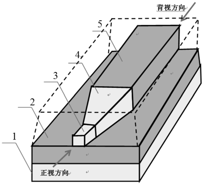 步骤一:SOI基底从下到上依次包括:硅基底、二氧化硅底包层和单晶硅膜;在所述单晶硅膜上通过刻蚀制作第一单模脊型硅波导芯、楔形硅波导芯和第二单模脊型硅波导芯,所述第一单模脊型硅波导芯、楔形波导芯和第二单模脊型硅波导芯为一体化结构,所述第一单模脊型硅波导芯比第二单模脊型硅波导芯的截面小;