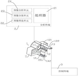 脑部图像采集终端,所述脑部图像采集终端配置为获取患者脑部的医学图像相关数据,其包括机体和结合在所述机体上的支撑座,所述机体上构造有对处于躺卧姿态的患者的脑部进行磁共振成像检查的检查孔,所述支撑座上设置有便于患者躺卧的床架,所述床架与一控制终端通讯连接并受控地在所述支撑座上滑动,以使患者躺卧进入所述检查孔;
