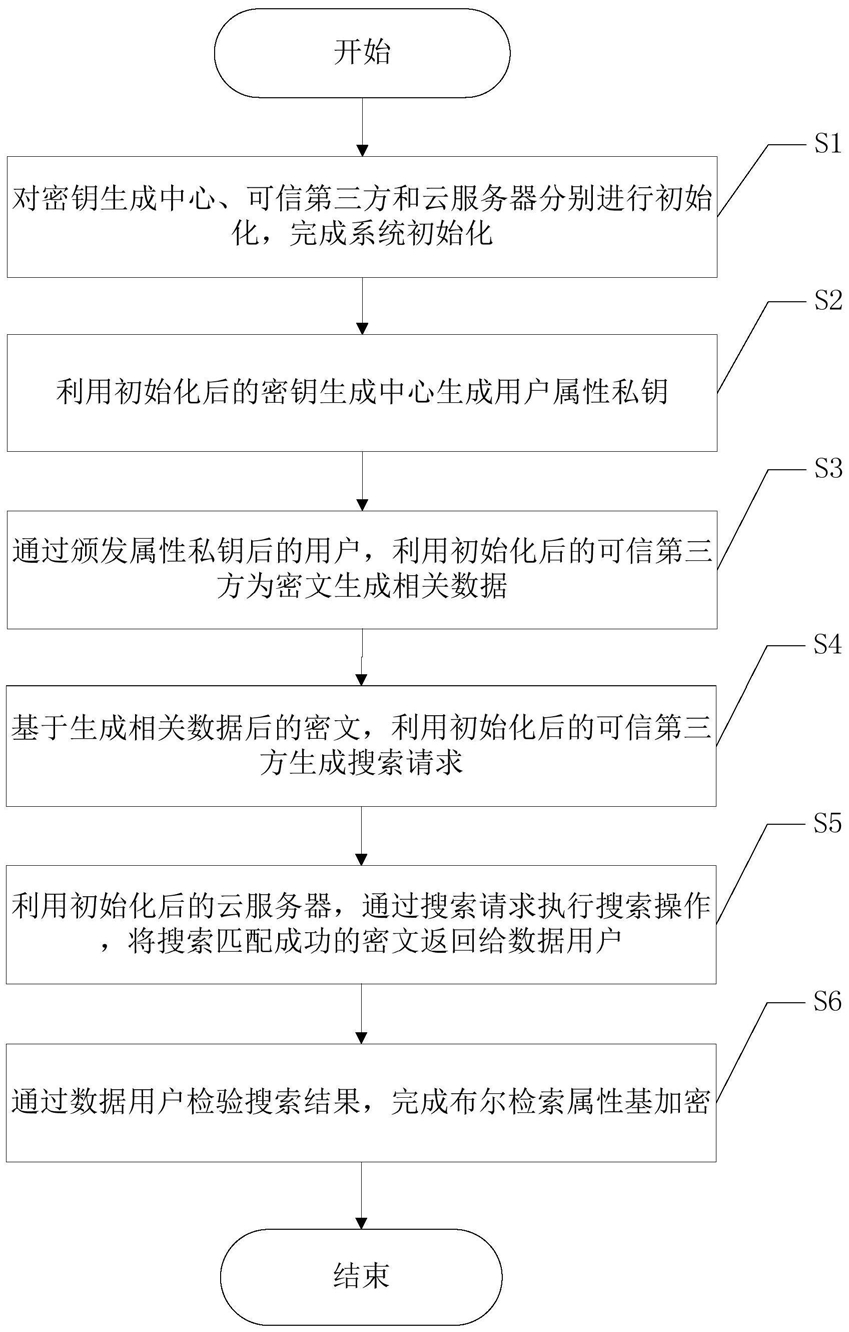 1.一种可验证搜索结果的布尔检索属性基加密方法,其特征在于,包括以下步骤:S1:对密钥生成中心、可信第三方和云服务器分别进行初始化,完成系统初始化;