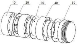 3.如权利要求1所述的氢键破裂预测煤岩冲击地压装置,其特征在于,所述前端盖(10)、后端盖(50)与结构体中段(40)靠近其外表面的轴向方向上形成有螺纹孔(70),使用长螺栓依次通过前端盖(10)、后端盖(50)与结构体中段(40)的螺纹孔(70)将前端盖(10)、后端盖(50)与结构体中段(40)连接在一起。