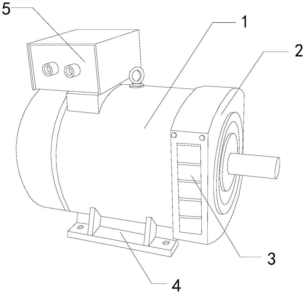 1.一种涡轮发电设备,其结构包括发电机(1)、涡轮机构(2)、透气口(3)、底座(4)、接电箱(5),所述涡轮机构(2)嵌固于发电机(1)的右端位置,所述底座(4)焊接于发电机(1)的底部位置,所述接电箱(5)安装于发电机(1)的上端位置,其特征在于:所述透气口(3)与涡轮机构(2)为一体化机构。