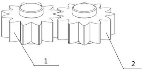 3.根据权利要求2所述的一种航天低脉动微泵用轻量化齿轮副的设计方法,其特征在于:所述设计方法中步骤二、理论流量和脉动系数的计算,依据航天低脉动微泵的较低扬程决定了泵内介质可视为无压缩输送,设a1、a2为o1、o2上输出腔一侧的两个齿顶点,a3为o1、o2齿顶圆的交点,随着齿轮副的连续旋转,在泵的输出腔内将形成a1o1no2a2a3的容积挤出区域,该容积挤出区域内的容积变化率即为泵输出介质的理论流量Q,则及其对应的脉动系数δ为