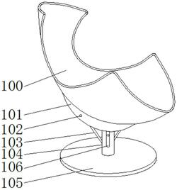 1.一种躺下可以滑动的休闲椅,包括椅子主体(100),其特征在于:所述椅子主体(100)的底部固定安装有缓冲块(101),所述椅子主体(100)的底部且位于缓冲块(101)的上面开设有滑腔(108),所述滑腔(108)的左右两端均固定安装有橡胶块(111),所述橡胶块(111)的上面固定连接有弹簧(110),所述弹簧(110)的一端固定安装有挡板(109),所述缓冲块(101)的内部填充有填充海绵(113),所述缓冲块(101)的下端穿插有支撑杆(104),所述支撑杆(104)的内部穿插有金属杆(117),所述金属杆(117)的下端套接有弹簧(119),所述弹簧(119)的上面且位于金属杆(117)的上面固定安装有限位板(118),所述金属杆(117)的上面固定安装有异形杆(114),所述金属杆(117)的上端固定安装有钢珠(112),所述支撑杆(104)的上面开设有底座(106),所述支撑杆(104)的侧面固定安装有弹簧杆(103),所述支撑杆(104)的下端固定安装有底座(105),所述滑腔(108)的底部开设有与金属杆(117)相匹配的滑槽(121),所述异形杆(114)的上端穿插在滑槽(121)中,异形杆(114)的下端的上面且位于金属杆(117)的上面固定安装有限位杆(116)。
