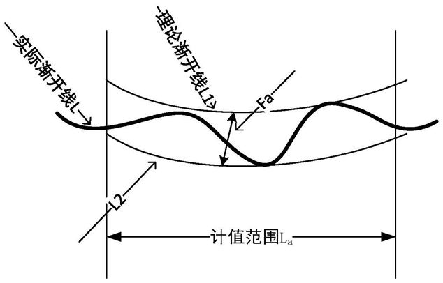 其中Fa为齿廓偏差值,rb为基圆半径,两条理论渐开线与基圆的交与两点, 分别为两点与X轴的夹角。