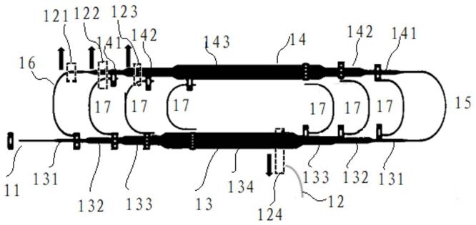 3.如权利要求2所述的硅基耦合波导的可调光延时线,其特征在于:所述多个弯曲耦合波导的数量为6个,该6个弯曲耦合波导都是以TE0模式传输光信号,每个所述弯曲耦合波导与第一主道和第二主道上的各自一个波导发生耦合。