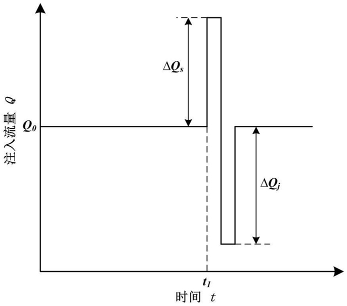 S4、根据记录的井口压力随时间变化情况分别找出停注时刻及流量调节时刻对应的井口压力,并计算两个时刻对应的压力差,根据该压力差计算流量调节幅值ΔQ;