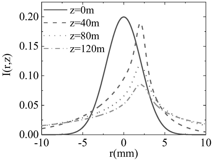 7.据权利要求6所述的一种计算海洋湍流中高阶非均匀辛格蓝绿激光光强的方法,其特征在于,所述步骤6具体为:公式中,我们考虑x′1=x′2=x,此时就得到了N阶非均匀辛格关联蓝绿激光波束在任意传输平面的光强表达式:式中,