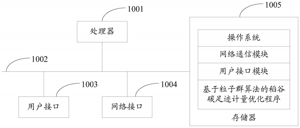 8.一种基于粒子群算法的稻谷碳足迹计量优化装置,其特征在于,所述基于粒子群算法的稻谷碳足迹计量优化装置包括:获取模块,用于获取稻谷产品碳足迹的生命周期数据,根据所述生命周期数据建立所述稻谷产品的碳足迹模型;