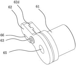 2.根据权利要求1所述的工业缝纫机自动穿线装置中的夹线结构,其特征在于,所述夹线壳体(61)呈筒状,所述夹线端盖(62)呈板状,所述夹线壳体(61)的外端具有向一侧延伸的延展部一(61a),所述夹线端盖(62)的一侧具有与所述延展部一(61a)相对应的延展部二(62a),所述延展部一(61a)朝向延展部二(62a)的侧面上开设有凹槽(61b),所述延展部二(62a)朝向延展部一(61a)的侧面上设有正对所述凹槽(61b)的凸块(62b)且所述凸块(62b)能够嵌入所述凹槽(61b)中,所述定刀(67)固设在所述延展部一(61a)的下侧且位于所述凹槽(61b)的正下方,所述动刀(66)固设在所述延展部二(62a)的下侧且位于所述凸块(62b)的正下方。