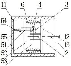 1.一种流体激发的流固混合式阻尼器,包括U型阻尼器外壳(11)、装设于所述阻尼器外壳内自由滑动的活塞A(12)和活塞B(52),装设于所述活塞A(12)上的活塞杆(13),以及装设于所述阻尼器外壳(11)内部的固体变阻尼模块,其特征在于:所述活塞A(12)的左侧固定装设有齿条(2),所述齿条(2)与所述固体变阻尼模块中的齿轮(3)啮合传动;所述活塞A(12)与所述活塞B(52)之间至少安装两条拉压螺旋弹簧(6);