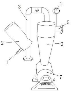 1.一种石油开采砂石过滤装置,其结构包括:排渣管(1)、筛盘滑滤砂器(2)、石油输送管(3)、压力表(4)、引流管(5)、反冲旋滤罐(6)、冲压卧罐(7),其特征在于:所述筛盘滑滤砂器(2)与石油输送管(3)嵌套成一体,所述排渣管(1)插嵌在筛盘滑滤砂器(2)的左下角,所述石油输送管(3)插嵌在反冲旋滤罐(6)的左上角,所述反冲旋滤罐(6)插嵌在冲压卧罐(7)的顶部上,所述压力表(4)安装于引流管(5)的顶部上,所述引流管(5)插嵌在反冲旋滤罐(6)的右上角;