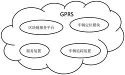 服务装置包括显示模块、处理模块、存储模块、认证模块和第二信息收发模块;显示模块、存储模块、认证模块、第二信息收发模块和处理模块电性连接;显示模块采用触摸屏,进行相关信息输入和信息显示;认证模块将显示模块输入的需要认证的信息与区块链服务平台内存储的加密信息进行比对;存储模块将认证通过后的部分认证信息进行分类存储,并将服务装置与车辆定位模块、车辆追踪装置之间收发的信息进行存储;处理模块将认证通过后的存储模块内的信息显示给显示模块;