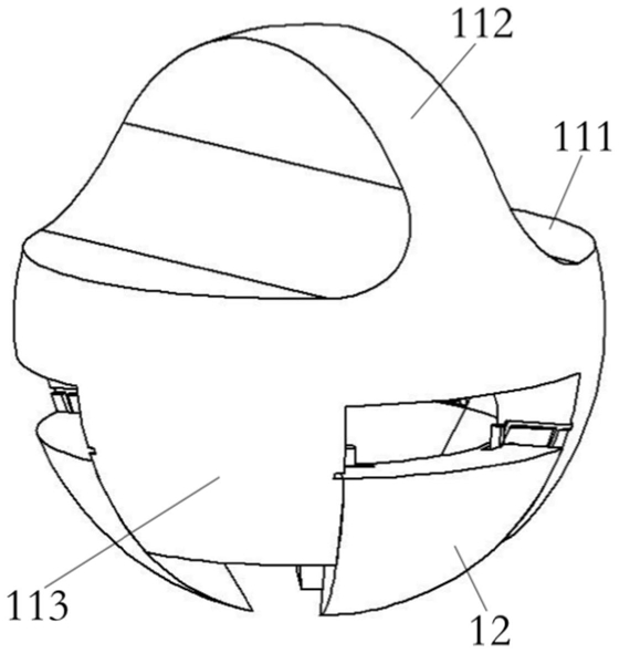 2.根据权利要求1所述的一种可调节爪式混凝土单轴拉伸试验夹具,其特征在于,弧形壳结构(113)的侧边对称设置有两条滑动凹槽(114),滑动凹槽(114)沿弧形壳结构(113)的弧长布置;爪型试件夹持件(12)的侧边上端设置有两个滑动柱(121),两个滑动柱(121)分别配合设置在两条滑动凹槽(114)中。