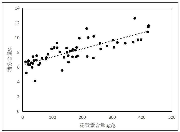 杨梅果实中的糖分含量Csugar=0.01087Canth+6.284;计算杨梅果实中的pH值
