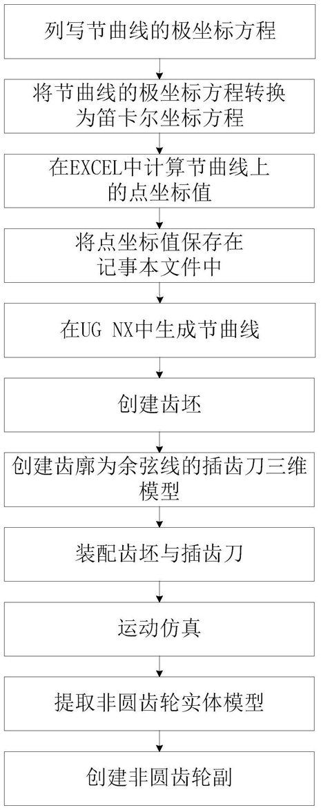1.一种余弦线齿廓的非圆齿轮副三维实体建模方法,其特征在于包括如下步骤:(1)设定非圆齿轮副主动轮与从动轮之间的中心距及传动比函数,列出主动轮节曲线、从动轮节曲线在极坐标系下的方程;
