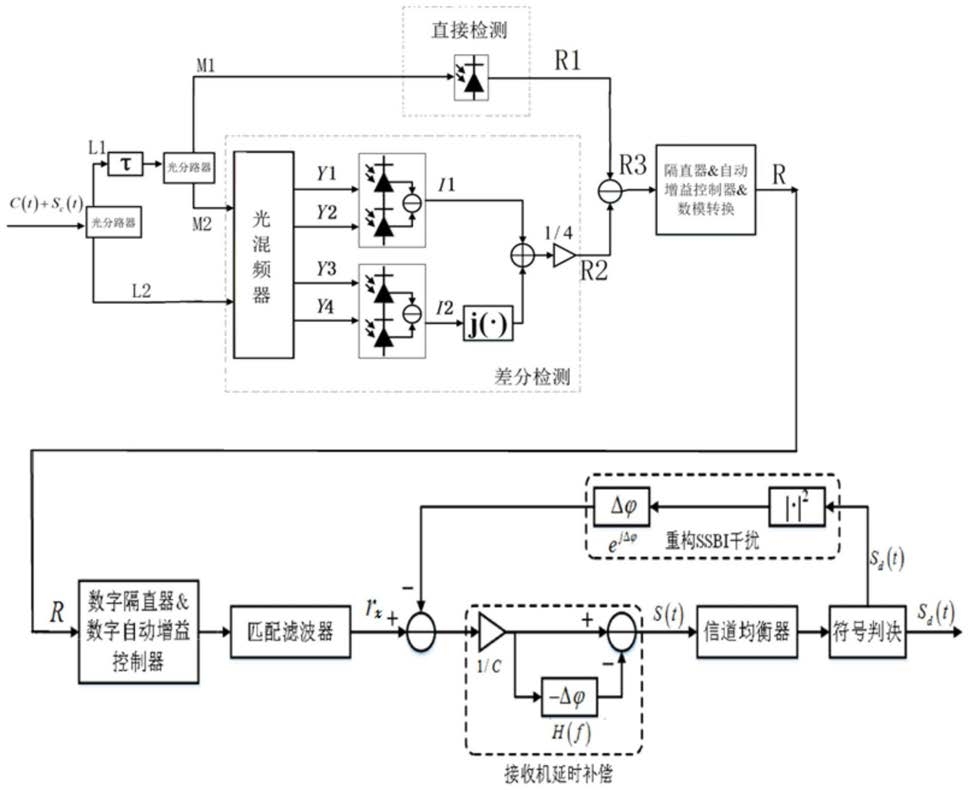 S2.无SSBI干扰的信号通过延时补偿装置进行延时补偿;