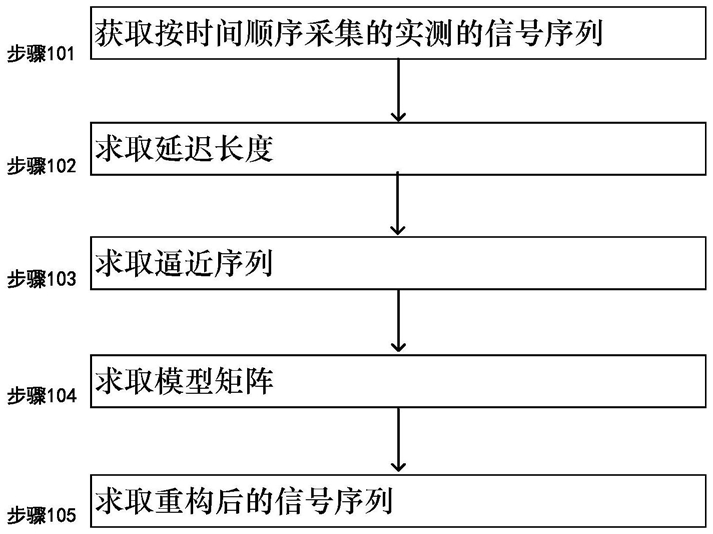 步骤104求取模型矩阵Wopt,具体为:所述模型矩阵Wopt的计算公式为Wopt=D[ΔSTΔS+STS];其中,D为模型选择因子矩阵,所述模型选择因子矩阵D的表达式为步骤105求取重构后的信号序列Snew,具体为:所述重构后的信号序列Snew的计算公式为Snew=Wopt[Sappro-μΔS]。其中,μ为调整系数,所述调整系数μ的计算公式为 max|ΔS|表示所述差分序列ΔS中绝对值最大的元素;max|S|表示所述信号序列S中绝对值最大的元素。