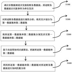 所述时序更新步骤基于第一数据链或者第二数据链中已有的数据节点对应的请求付款时间或者付款响应时间,计算第一数据链或者第二数据链中已有的数据节点与第一数据流或者第二数据流的相似度;