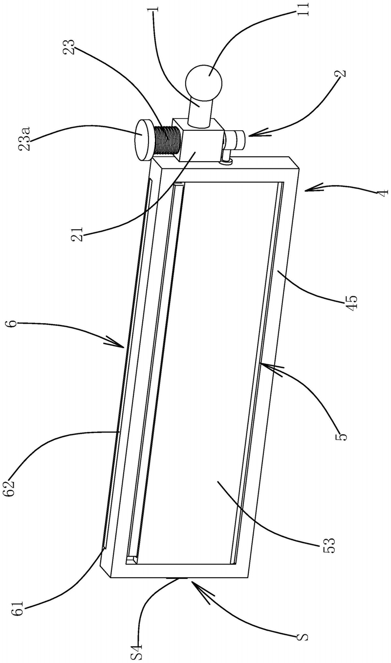 5.根据权利要求2所述的一种适用于新能源汽车的遮阳板装置,其特征在于:所述的辅助遮阳板装置(5)包括设置于所述的第一遮阳板(45)上的矩形槽(51),所述的矩形槽(51)下端固设有铰接柱(52),所述的铰接柱(52)上活动安装有第二遮阳板(53),所述的第二遮阳板(53)上设有矩形腔(54),所述的矩形腔(54)下端面通过第三弹簧(55)连接有第三遮阳板(56),且所述的第三遮阳板(56)上端穿透所述的第二遮阳板(53)上端,所述的第三遮阳板(56)下端设有第三限位板(56a),所述的第三限位板(56a)宽度与所述的矩形腔(54)保持一致,且大于所述的第三遮阳板(56)的宽度,所述的第三遮阳板(56)上端还设有橡胶片(57)。6.根据权利要求5所述的一种适用于新能源汽车的遮阳板装置,其特征在于:所述的承托板装置(6)包括设置于所述的第一遮阳板(45)上的滑动腔(61),所述的滑动腔(61)内活动安装有承托板(62),且所述的承托板(62)一侧通过第四弹簧(63)与所述的滑动腔(61)一端面相连。7.根据权利要求6所述的一种适用于新能源汽车的遮阳板装置,其特征在于:所述的连接组件(L)包括设置于所述的承托板(62)一侧的槽口(L1),所述的槽口(L1)内固定安装有第一磁铁(L2),所述的连接组件(L)还包括设置于所述的第三遮阳板(56)一侧的连杆(L3),所述的连杆(L3)设置于运行槽(L4)内,且所述的运行槽(L4)设置于所述的第一遮阳板(45)上,所述的连杆(L3)靠近所述的承托板(62)一侧固定安装有第二磁铁(L5),且所述的第一磁铁(L2)与所述的第二磁铁(L5)相互吸引。