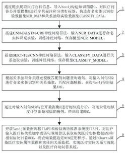 7.根据权利要求6所述的一种基于BERT和相似度算法的医疗知识图谱问答系统构建方法,其特征在于,所述步骤(6)中通过ECharts渲染医疗实体属性数据和实体间关系数据,实现医疗实体关系可视化以及医疗自动问答系统的具体步骤如下:(6.1)开放Neo4j图数据库接口API和相似病历推荐系统接口API;
