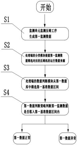9.根据权利要求1所述的一种车间数据异常识别的方法,其特征在于:所述压铸工序中的压铸机的各个监测数据对应的第一基准数据区间不同。