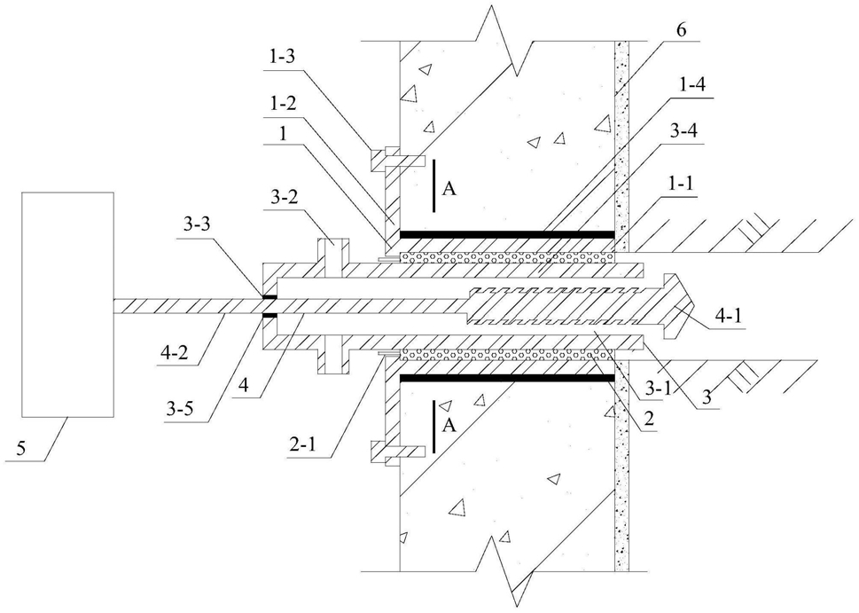 3.根据权利要求1所述的一种隧道衬砌渗透破坏治理装置,其特征在于:所述遇水膨胀橡胶圈(1‑4)和法兰圈(1‑2)在密封安装过程中,其密封接触面处需涂上密封胶,进一步提高装置的密封性能,保证隧道衬砌结构防水性和安全性。