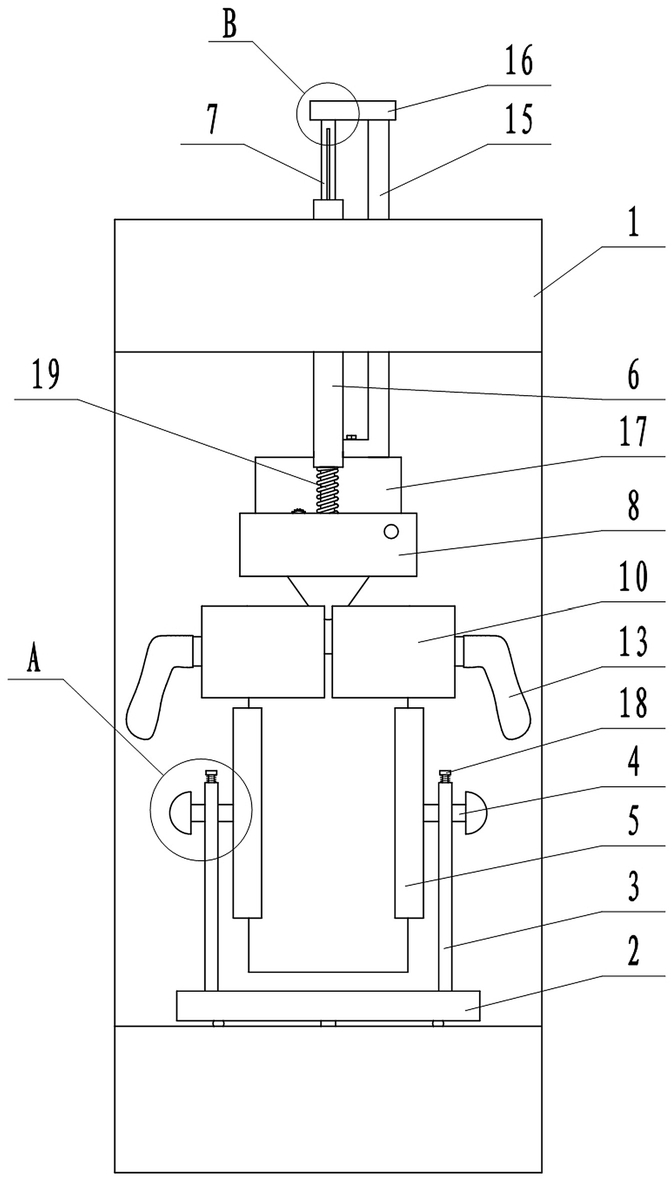 7.根据权利要求1所述的岩石检测试件端面打磨装置,其特征在于,所述的导杆(7)上套装有位于套筒(6)下端面和底板(801)之间的压簧(19)。