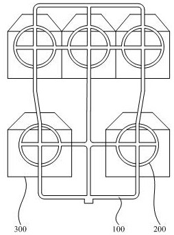 每一所述空调位还包括伸缩多节管,所述伸缩多节管用于在受力时发生预设范围内的可恢复性形变,所述伸缩多节管的一端连通所述出风口,所述伸缩多节管的另一端连通所述顶部风管,所述伸缩多节管用于安装在所述座位上方,所述出风口具有环形状并通过所述调节阀顺序连通所述伸缩多节管和所述顶部风管,所述感应器用于感应所述座位被使用时,开启所述调节阀以打开所述出风口;