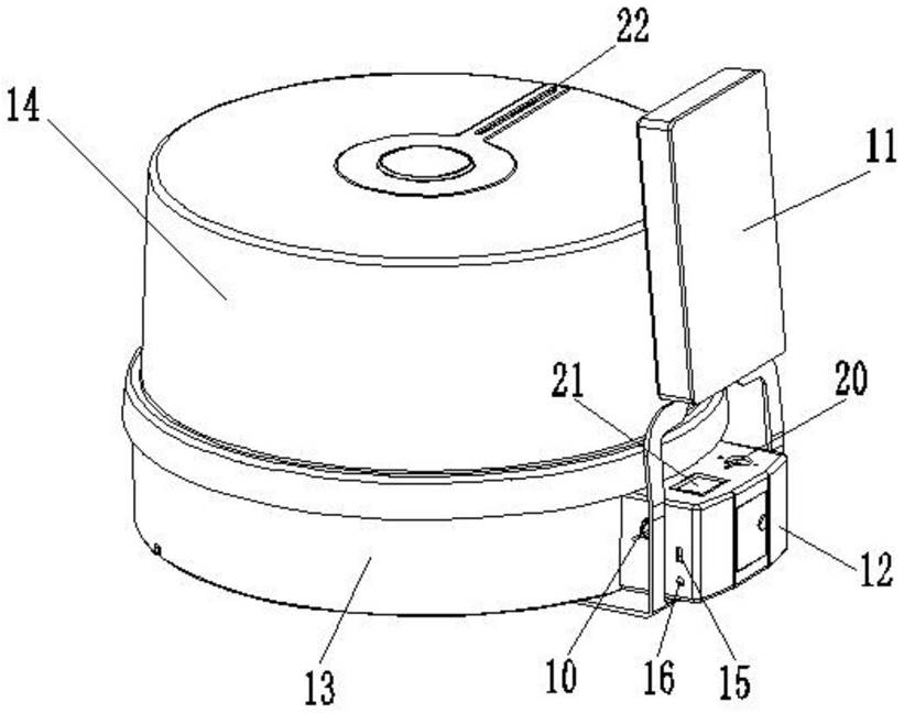 2.根据权利要求1所述的即开型彩票辅助销售设备,其特征在于:所述机器上盖(14)扣合卡接在所述机器底壳(13)上,所述机器上盖(14)和所述机器底壳(13)均设计为透明的圆形壳体。