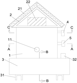 3.根据权利要求1所述的一种道路行驶中防疲劳驾驶用警示装置,其特征在于:所述顶部框架(2)顶部左右两侧设有太阳能板(21),所述顶部框架(2)内部设有蓄电池(22)。